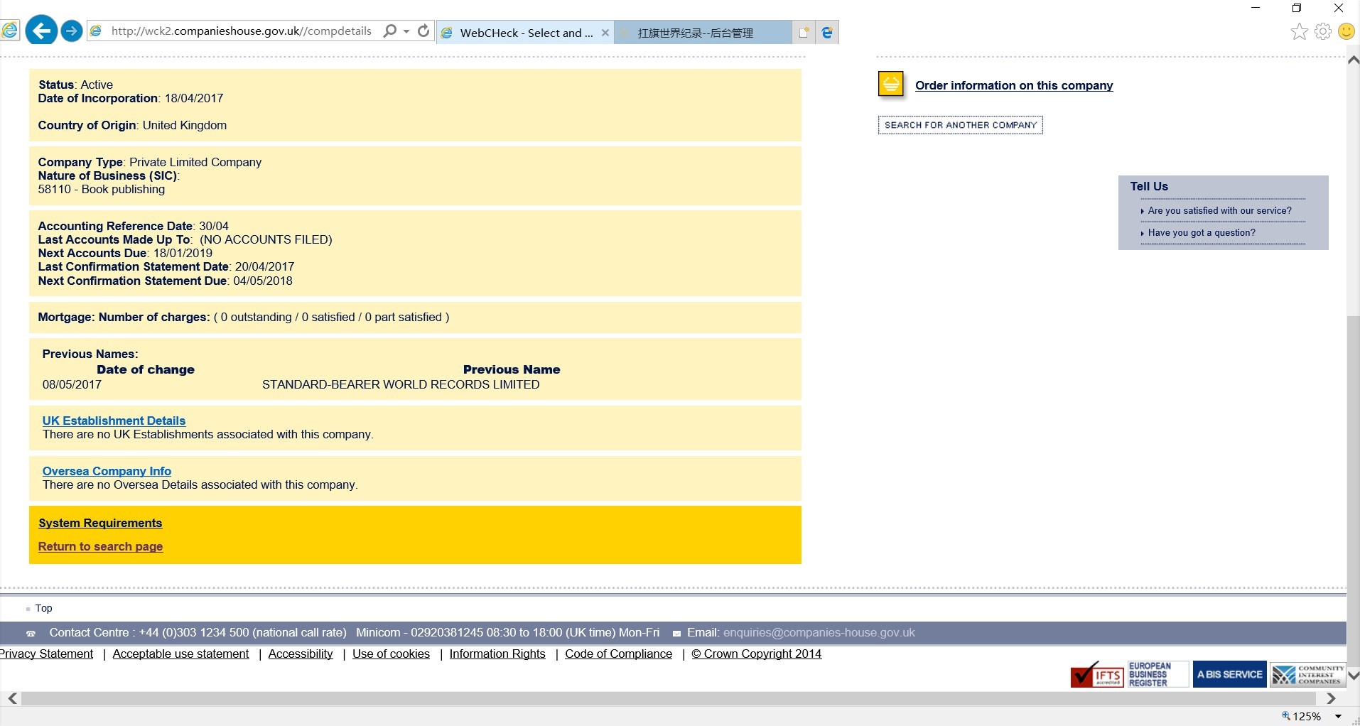 英国政府公司注册处网上查询中心查询:http://wck2.companieshouse.gov.uk 查询结果如下: