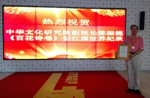 大红大紫沾喜气,花朵殊荣献英雄。
