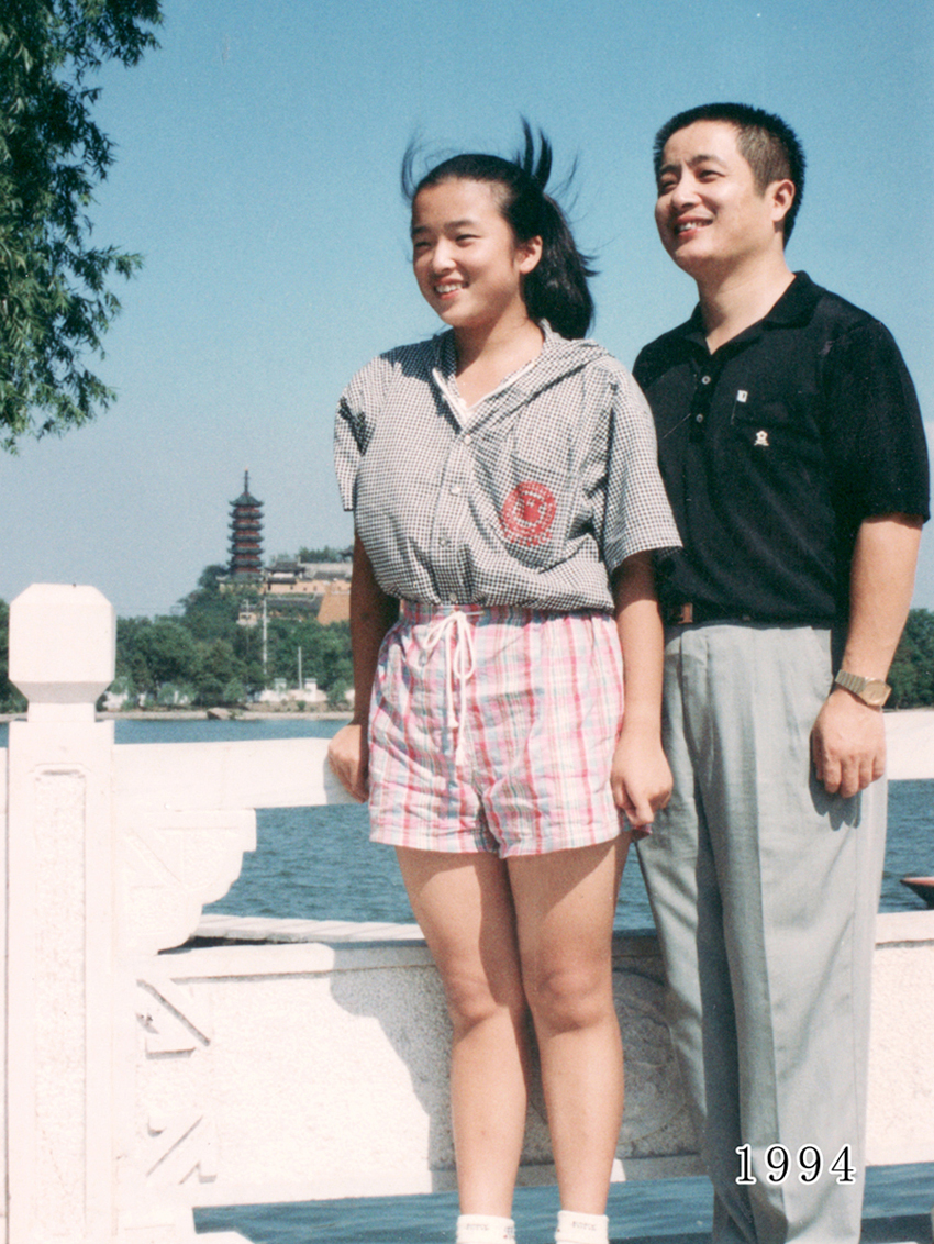 世界纪录保持者:    35年华允庆父女合影。