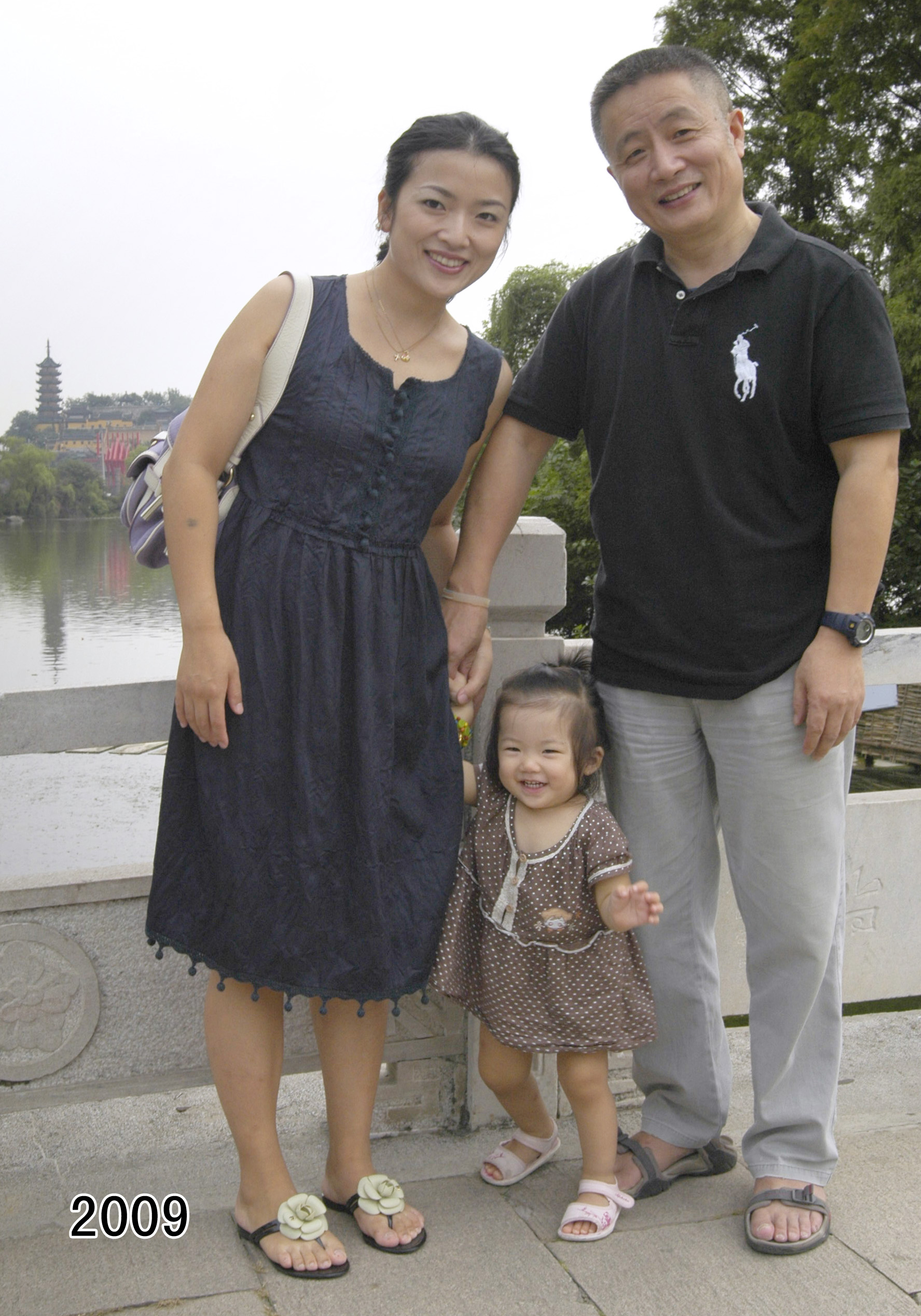 世界上同一地点年限最长的父女合影是35年华允庆父女合影。