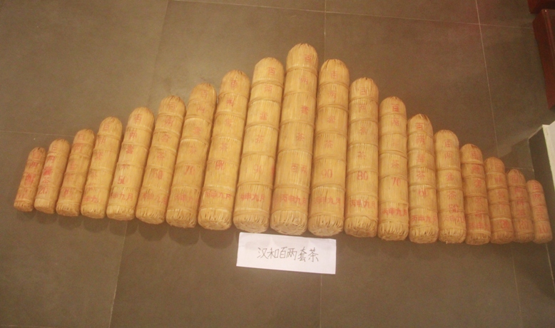 成都汉和文化有限公司开发并踩制的 “汉和百两套茶”安化花卷茶是世界上首套“百两花卷套茶”。