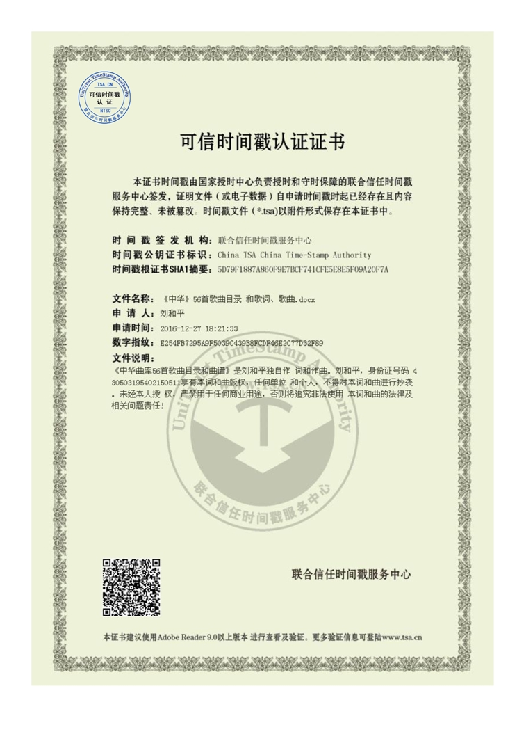 世界纪录名称:          刘和平先生是世界上用同一首歌词谱写最多首歌曲的人。