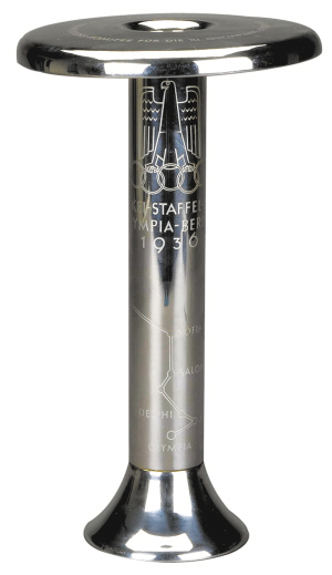 第11届柏林奥运会上,第一只顶端装有易燃镁,全长27厘米,重450克的具有现代意义的奥运会火炬出现。火炬铁柄上雕刻着火炬传递途中经过的希腊、保加利亚、南斯拉夫等7国首都路线图并刻有“向传递着致敬”的字样。