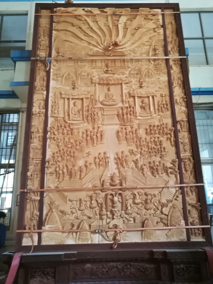 莆田市丹桂工艺有限公司黄文寿先生等制作的桧木《西方极乐世界》浮雕是世界上面积最大的桧木佛像浮雕。