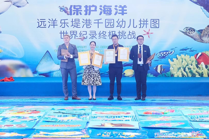 世界纪录保持者:     浙江少儿频道与杭州远洋乐堤港联合发起创作的塑料吸管海洋生物拼图。