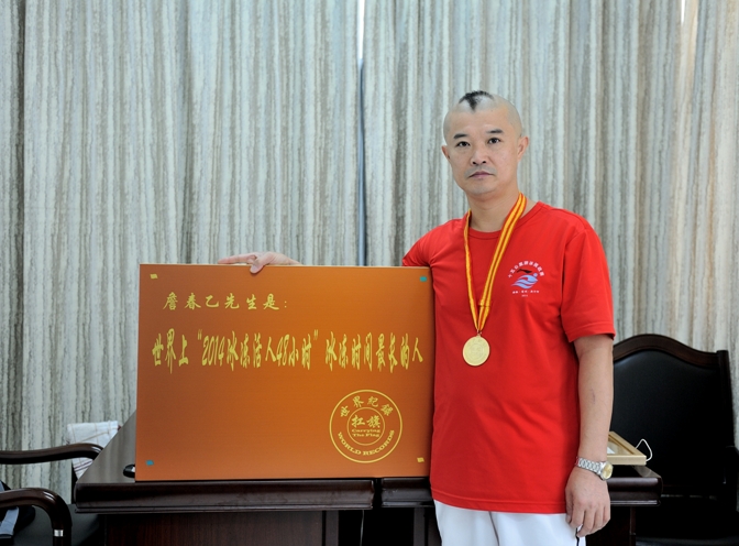世界上“2014冰冻活人48小时”冰冻时间最长的人是詹春乙先生。