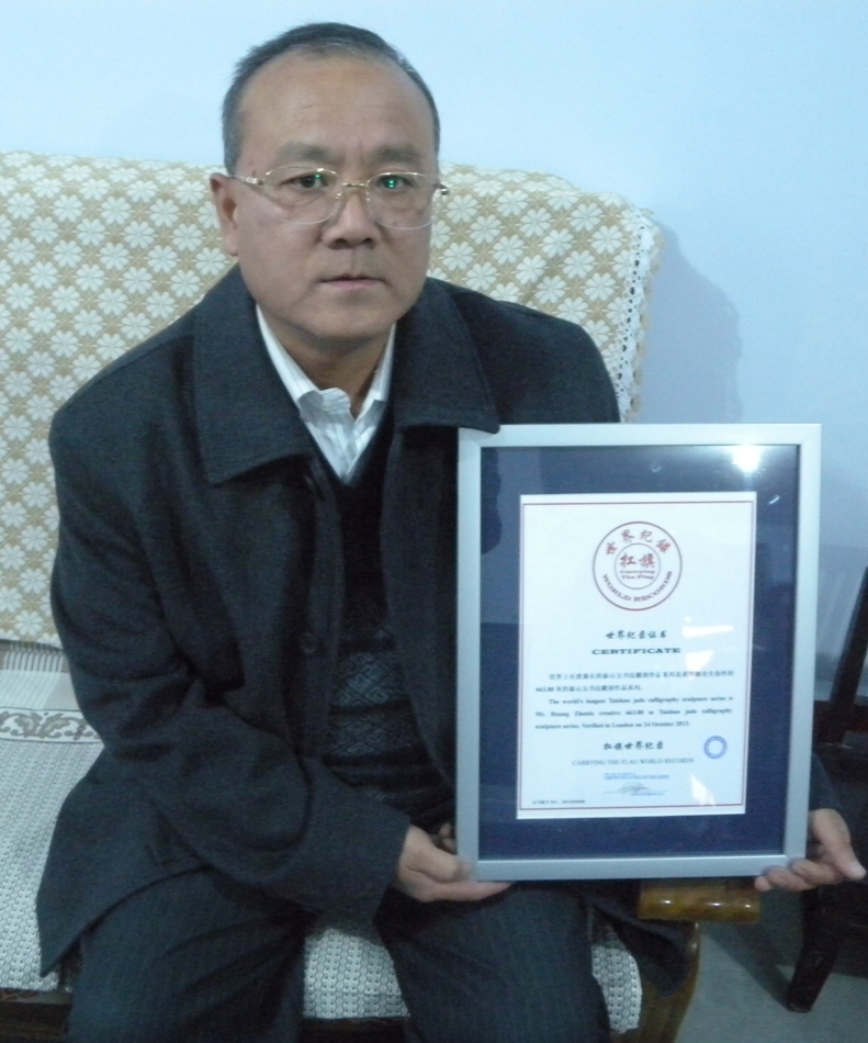 世界纪录保持者:   黄振路先生创作的663.88米的泰山玉书法雕刻作品系列