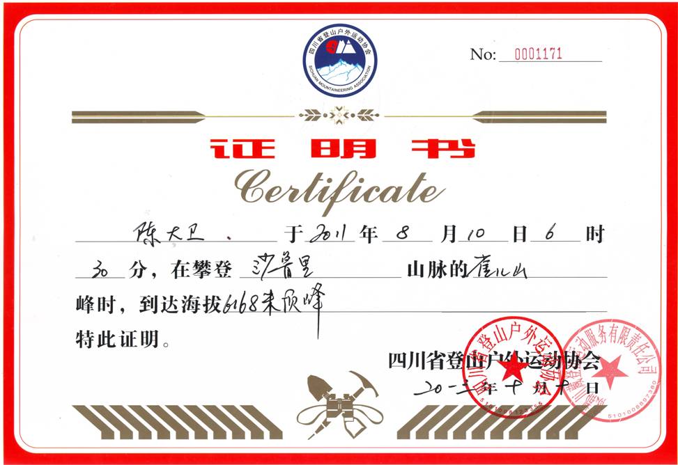 世界纪录名称:      世界上高山作画海拔最高的人是陈大卫先生。