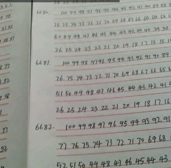 世界纪录规则:      1、世界上在信纸粘成的最长1字上,倒写阿拉佰数字100至1数量最多的人。
