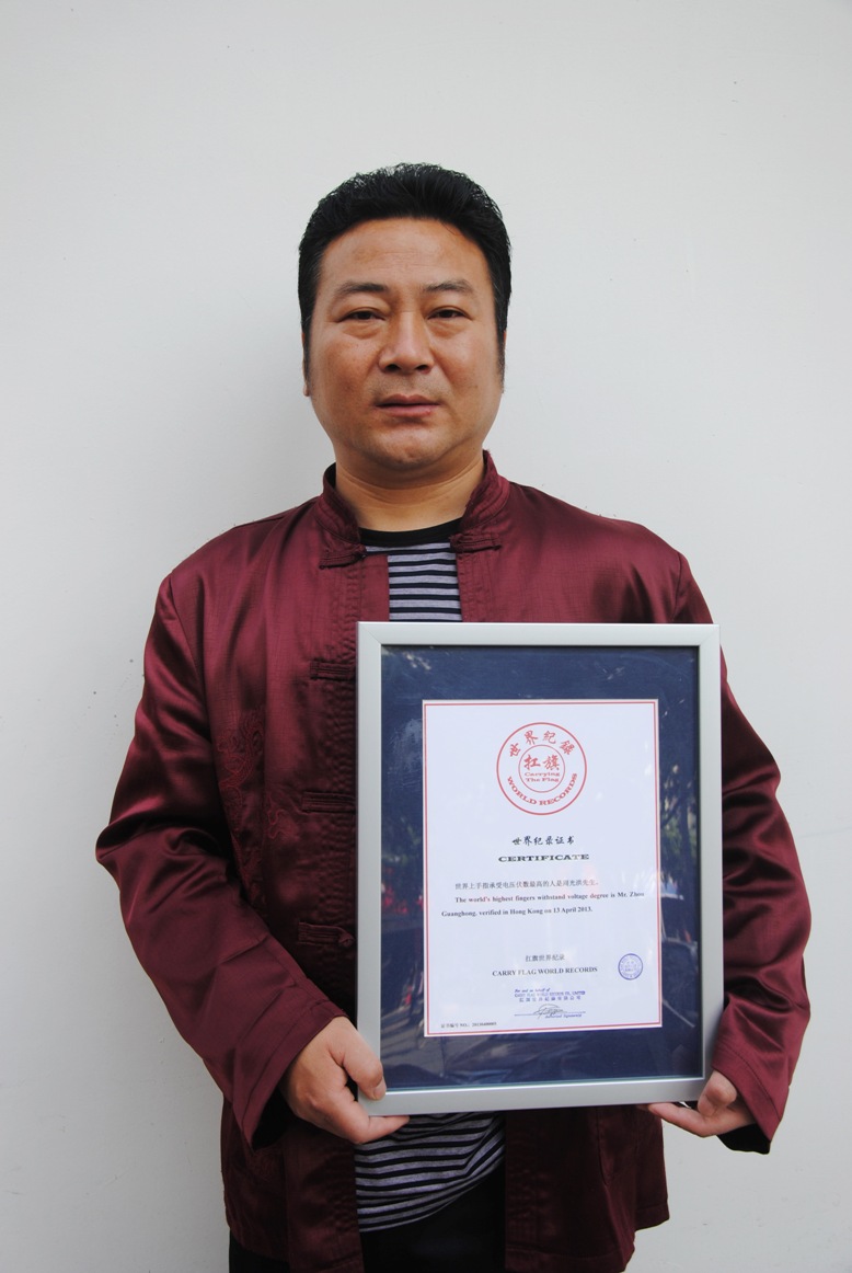 世界上手指承受电压伏数最高的人是周光洪先生。