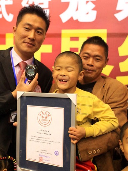 重庆卫视报道龙弟豪破后手翻世界纪录及扛旗世界纪录现场认证活动视频见: