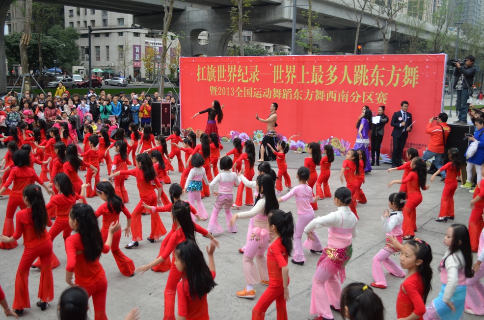 世界纪录初创者:   全国东方舞推广中心、成都宇辰文化艺术有限公司组织的SM广场东方舞(肚皮舞)广场表演活动
