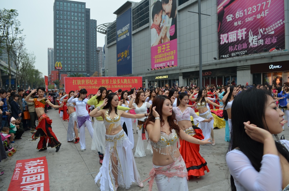 世界纪录名称:       世界上规模最大的东方舞(肚皮舞)广场表演活动是全国东方舞推广中心、成都宇辰文化艺术有限公司组织的SM广场东方舞(肚皮舞)广场表演活动。