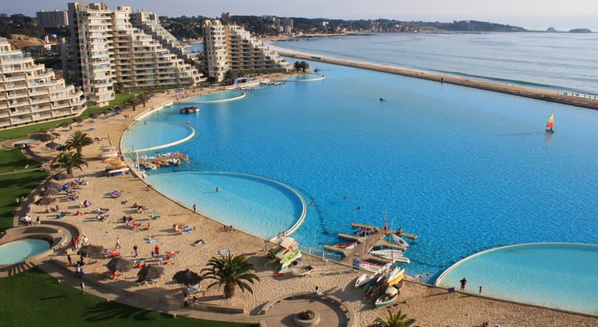 答:世界上最大的游泳池是位于智利的圣阿方索海岸边的游泳池