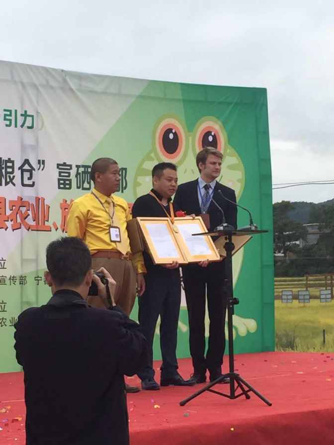 世界纪录保持者:   江西虔农农业股份有限公司制作的“虎虎”、“妞妞”卡通青蛙模型。