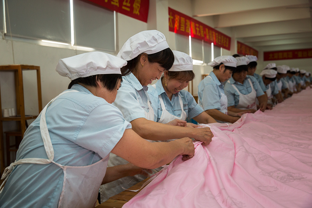 世界纪录初创者:   苏州太湖雪丝绸有限公司制作的30米手工拉网蚕丝被。