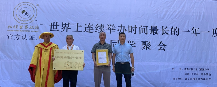 世界纪录名称:       连续举办14届的原遵义县二中(鸭溪中学)首届(1959)同学聚会是世界上连续举办时间最长的一年一度同学聚会。