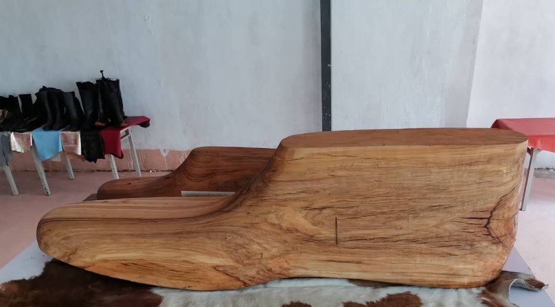 喀什市耐用手工艺品专业合作社(库米塔艺皮鞋制作厂)制作的库米塔艺(KUMTAY)超大手工木鞋楦是世界上最大的鞋楦。