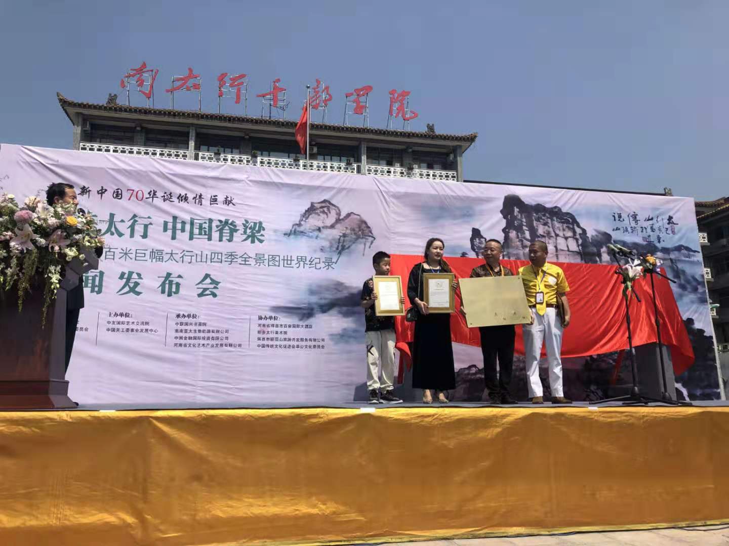 世界纪录名称:       单东来先生的《太行山四季全景图》是世界上最长的太行山题材中国山水画长卷。