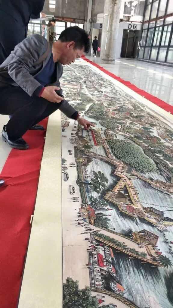 姜开明先生创作的《泽口梦乡图》是世界上最长的中国农耕文化散点透视写实通景界画长卷。画芯长5335厘米,宽度140厘米。