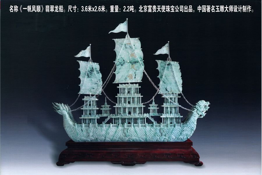 魏相春先生收藏的翡翠龙船《一帆风顺》是世界上最大的翡翠龙船。