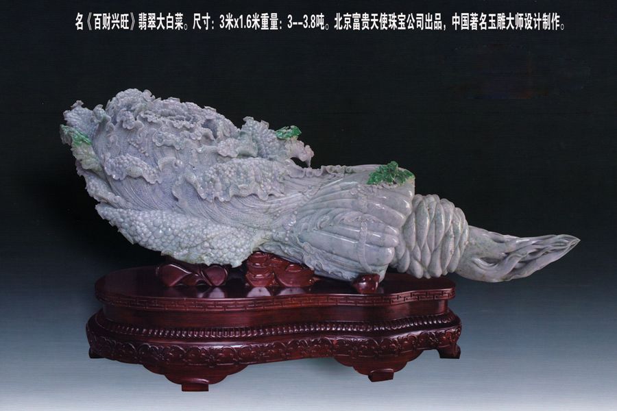 世界纪录名称: 魏相春先生收藏的翡翠白菜《百财兴旺》是世界上最大的翡翠白菜。