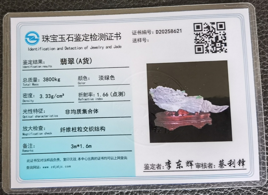 世界纪录保持者: 魏相春先生收藏的翡翠白菜《百财兴旺》。