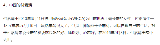 7、涉嫌盗用香港 扛旗世界纪录有限公司案例“世界上最长寿的人付素清”,事实是其没有认证过任何人的长寿纪录: