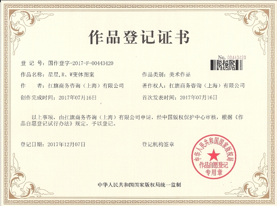 国家版权局颁发的“国作登字-2017-F-00443420”号《作品登记证书》见: