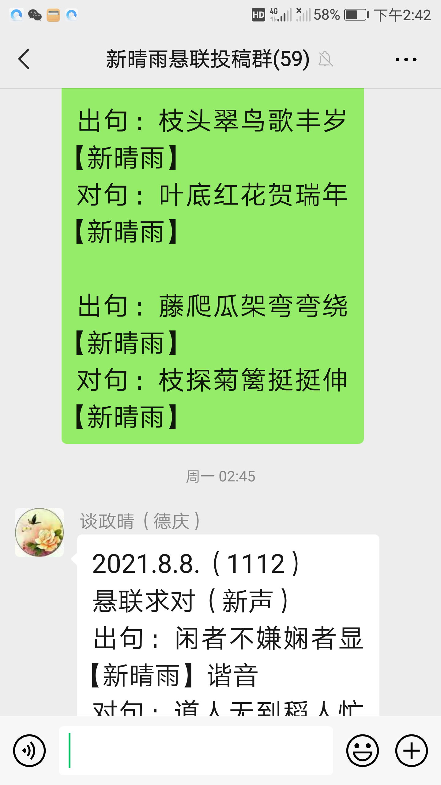 刘永清先生的微信 “新晴雨悬联求对”活动是世界上连续举办期数最多的微信“悬联求对”活动。