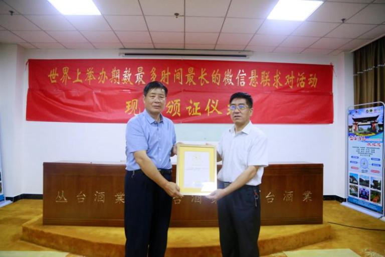 世界纪录规则:        1、世界上连续举办期数最多的微信“悬联求对”活动。2、每天1期、每期5个对联求对交流。