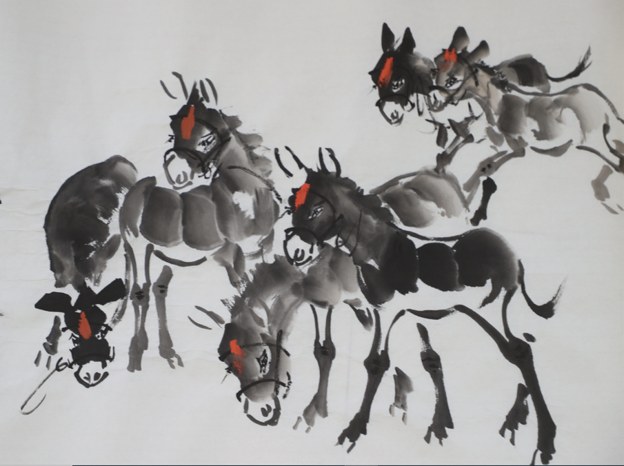 王新平先生的《丝绸西域风 翰墨书画情》长卷是世界上绘驴数量最多的水墨画长卷。