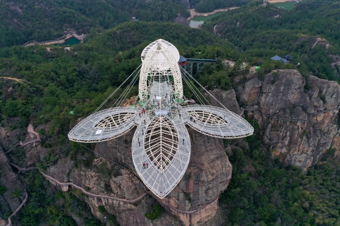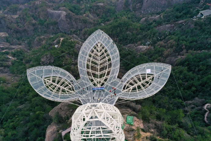 中惠旅智慧景区管理股份有限公司投资的平江石牛寨景区的“中国悬崖天眼”是世界上最大的“三叶草”玻璃高空观景平台。