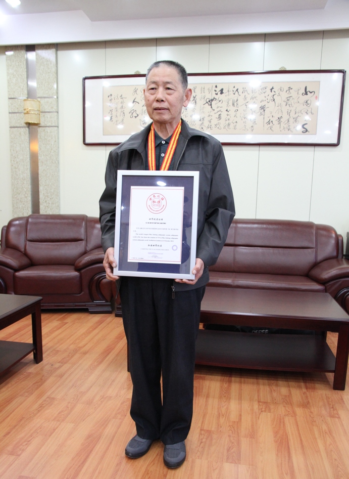 The world's longest Mao Zedong calligraphy system calligraphy scroll is Mr. Sun Jiuru the creation of 715 m Mao Zedong calligraphy system calligraphy scroll. Verified in London on 13 October 2013.