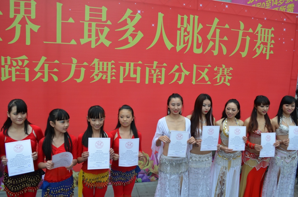 世界纪录保持者:    全国东方舞推广中心、成都宇辰文化艺术有限公司组织的SM广场东方舞(肚皮舞)广场表演活动