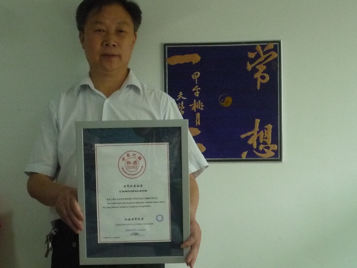 世界纪录规则:        1、世界上最早公证创作彩色砂石书法作品的人。