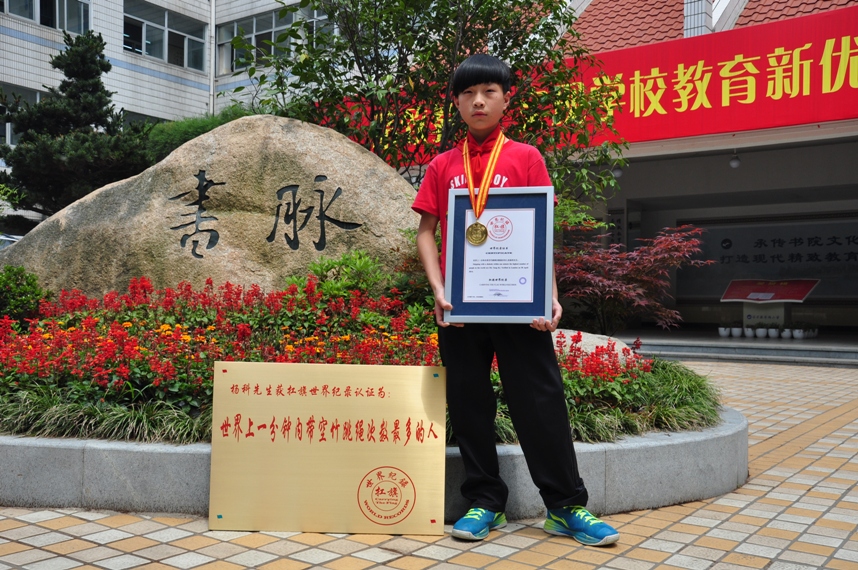 浙江绍兴杨科先生申报成功案例:世界上一分钟内带空竹跳绳次数最多的人(点击数: )