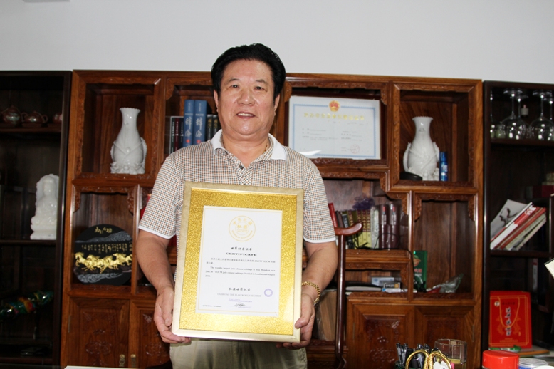 世界纪录保持者:    朱洪坤先生所有的236CM*112CM的翡翠白菜。