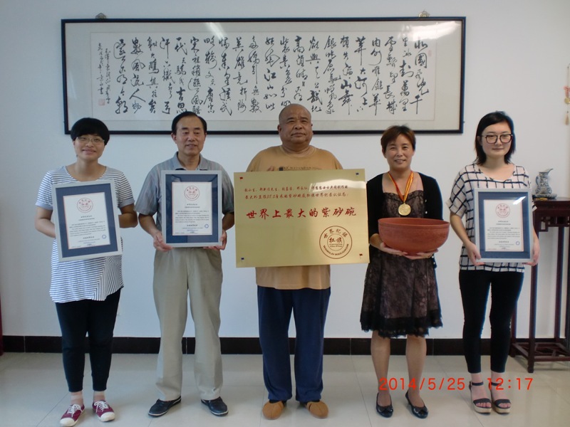 世界纪录保持者:    张小生、郑新顺先生、张嘉茜、邓永仙、许悠悠女士共同创作的最大外直径38.5厘米的紫砂碗