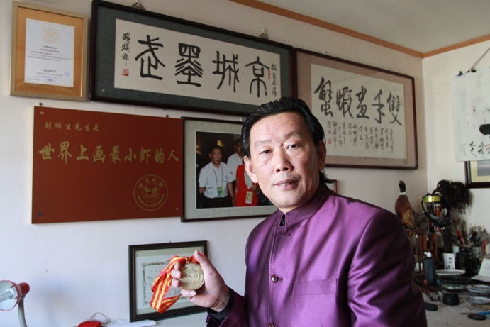 北京刘振生先生申报成功案例:世界上画最小虾的人(点击数: )