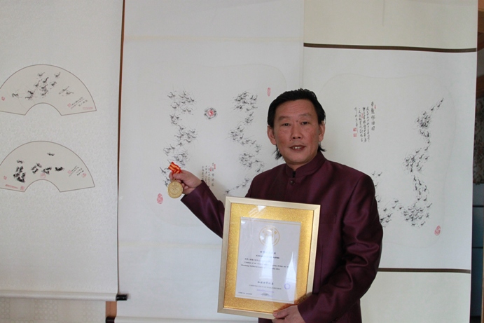 Creation of the world's smallest painting shrimp are Mr. Liu Zhensheng. Verified in London on 18 November 2014.
