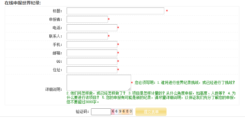 2、在本网导航栏中最后面的“在线申报世界纪录” 中填写。