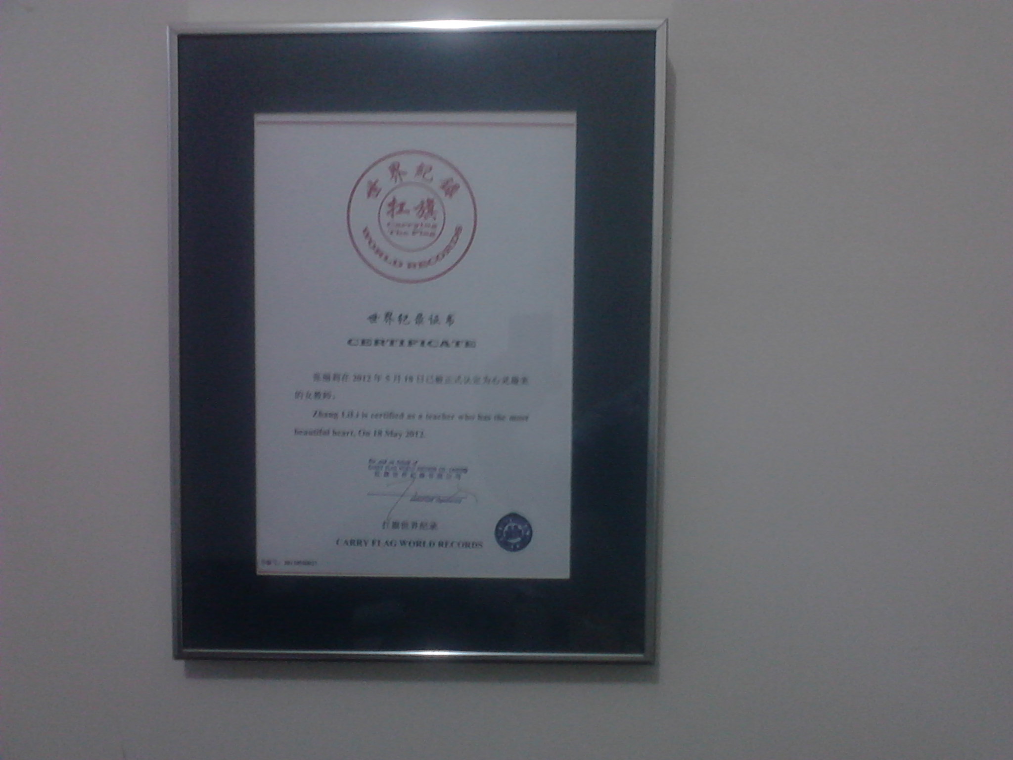 四、最后由高级世界纪录认证师签字,盖章,打印证书。