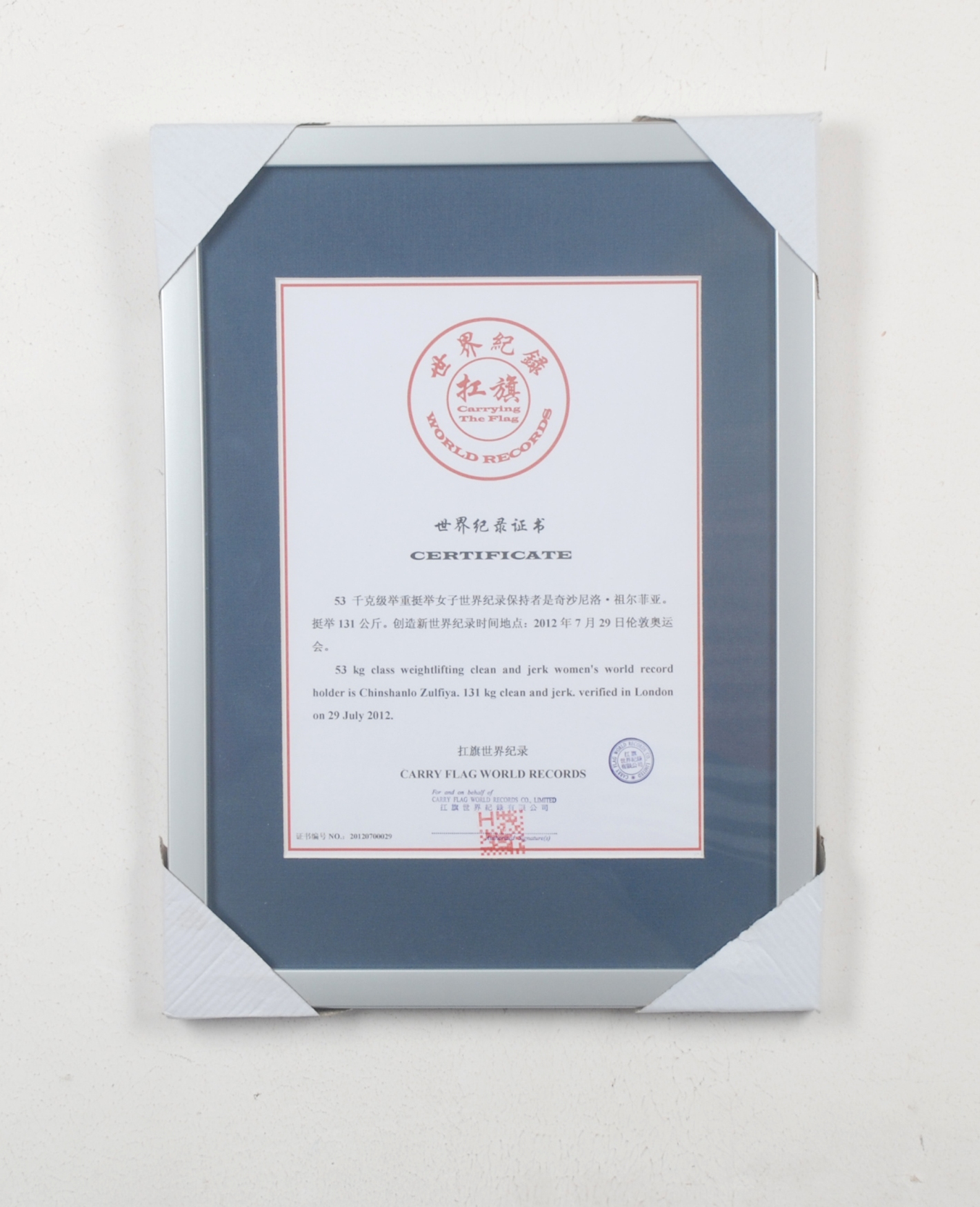 世界纪录颁证日期: 2012年7月29日