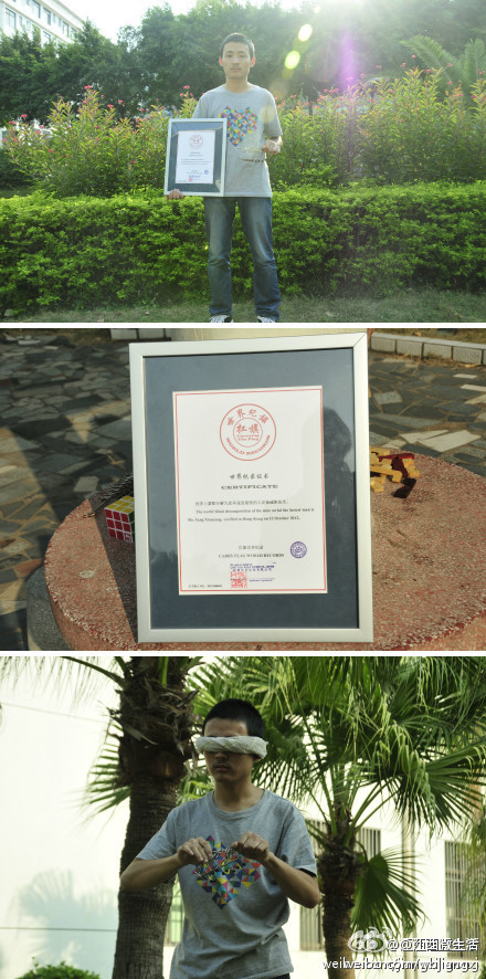 The world blind decomposition of the nine serial the fastest man is Mr. Yang Xianyang. verified in Hong Kong on 12 October 2012.